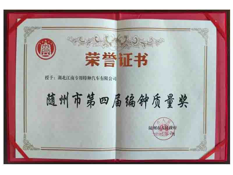 湖北江南專用特種汽車有限公司經(jīng)過申報(bào)推薦、資格審查、資料評審、現(xiàn)場評審、問詢答辯、綜合評價(jià)、審議公示等程序,被授予“隨州市第四屆編鐘質(zhì)量獎(jiǎng)”。